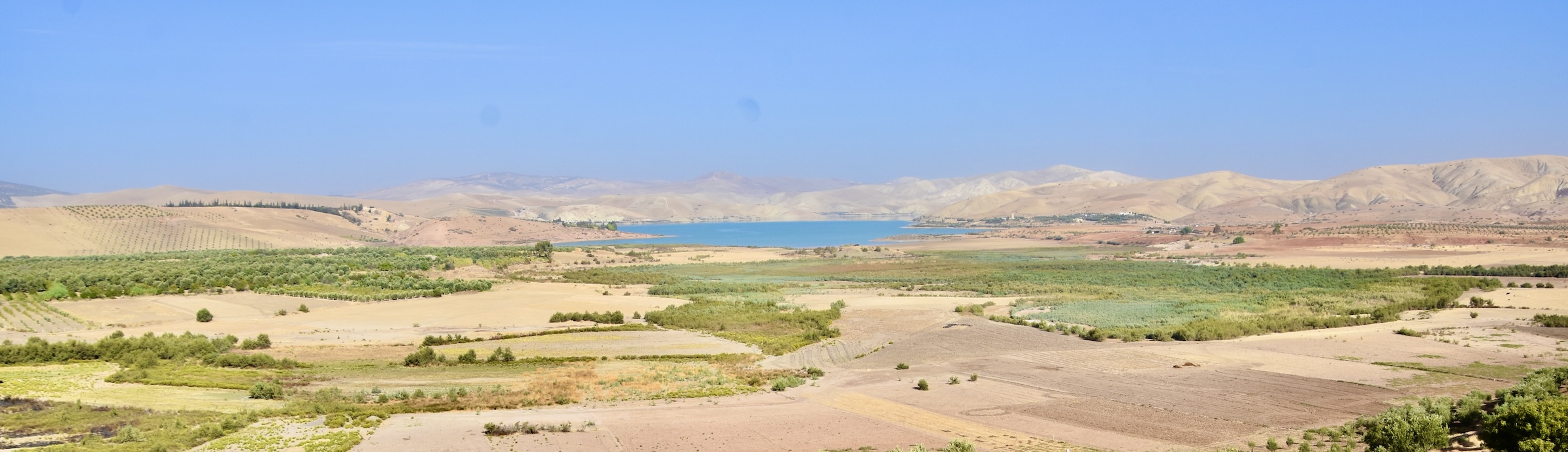 Not far from the site there is a pullout where we stop for this view of the valley below and the reservoir Barrage Sidi Chahed in the distance.