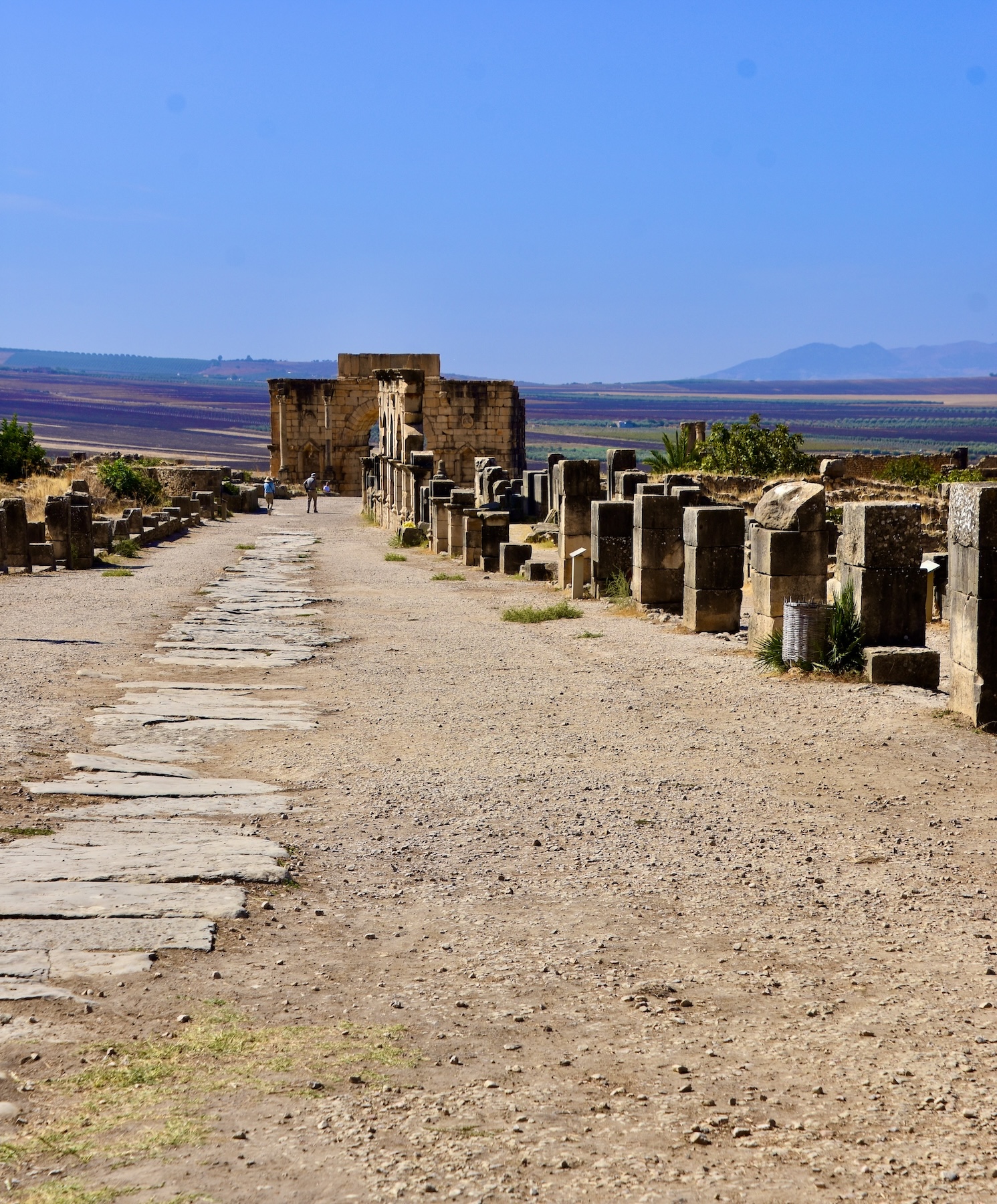 Thus in 25 BCE this superstar couple were sent to Mauretania to take charge and although Caesarea in modern day Algeria was the titular capital, they chose to make Volubilis the most important city in the territory. Together they embarked upon creating a thoroughly Romanized city far from their childhood home. In the year 40 the bastard Caligula had Juba and Cleopatra’s son Ptolemy assassinated which set off a revolt in Mauretania which the Romans crushed. Emperor Claudius, successor to Caligula, annexed Mauretania as a Roman province and for the next 200 years the city prospered, reaching a population of about 20,000 at its zenith, most of whom were Romanized Berbers.