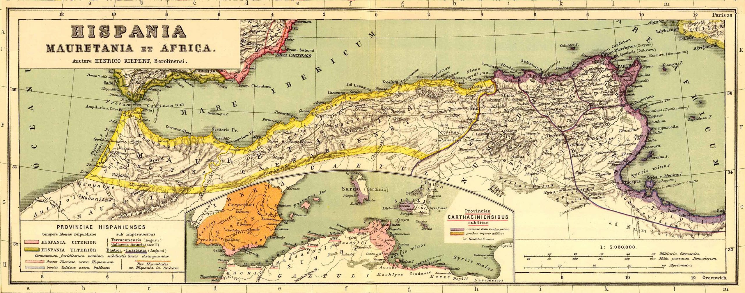 After the Romans defeated the Carthaginians once and for all in the Third Punic War that ended in 146 BCE, Volubilis, which was located in what became the Roman client state of Mauretania, was now ruled by Berber kings who owed their allegiance to Rome. As this map shows, the Roman state of Mauretania, outlined in yellow, was nowhere near the modern country of Mauretania which lies some thousand kms. or more south of the original Mauretania. The Romans referred to the Berbers of the area as the Mauri which in turn evolved into the term ‘Moor’ and hence, Morocco.