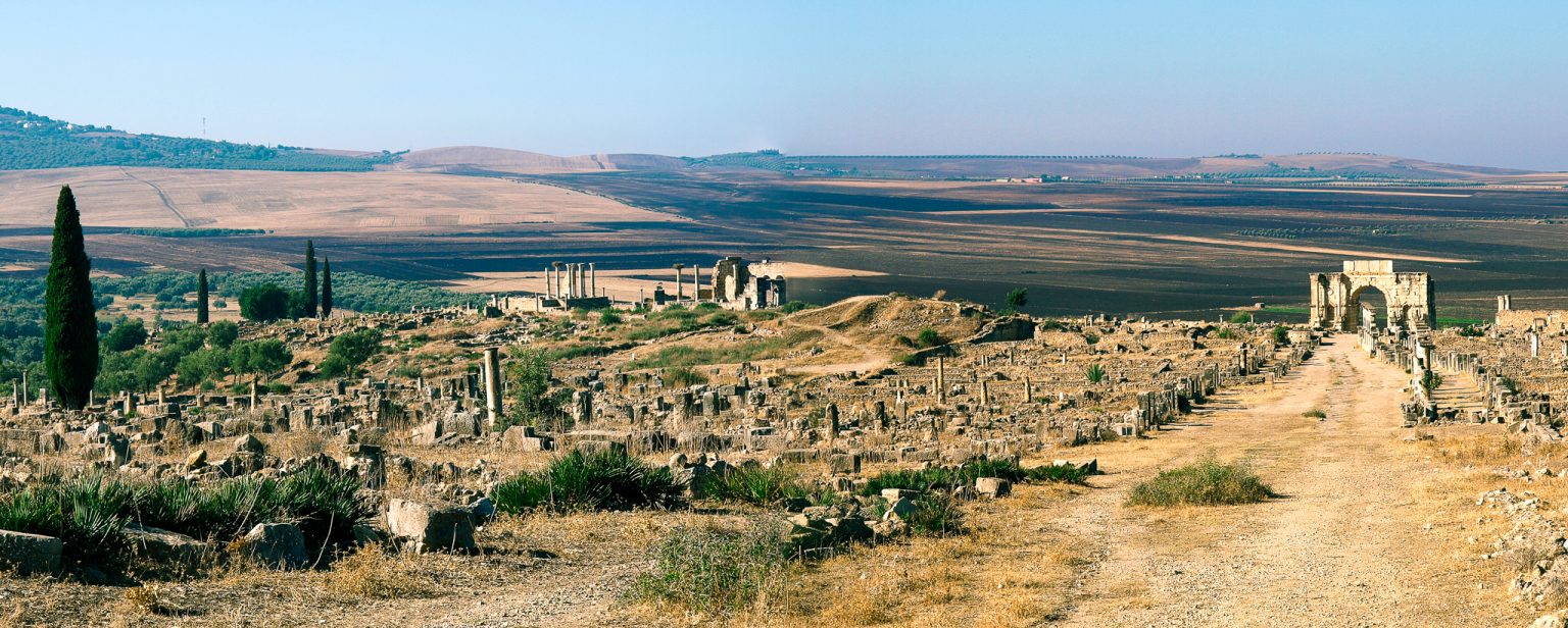 Volubilis contains essentially Roman vestiges of a fortified municipium built on a commanding site at the foot of the Jebel Zerhoun. Covering an area of 42 hectares, it is of outstanding importance demonstrating urban development and Romanisation at the frontiers of the Roman Empire and the graphic illustration of the interface between the Roman and indigenous cultures. Because of its isolation and the fact that it had not been occupied for nearly a thousand years, it presents an important level of authenticity. It is one of the richest sites of this period in North Africa, not only for its ruins but also for the great wealth of its epigraphic evidence.