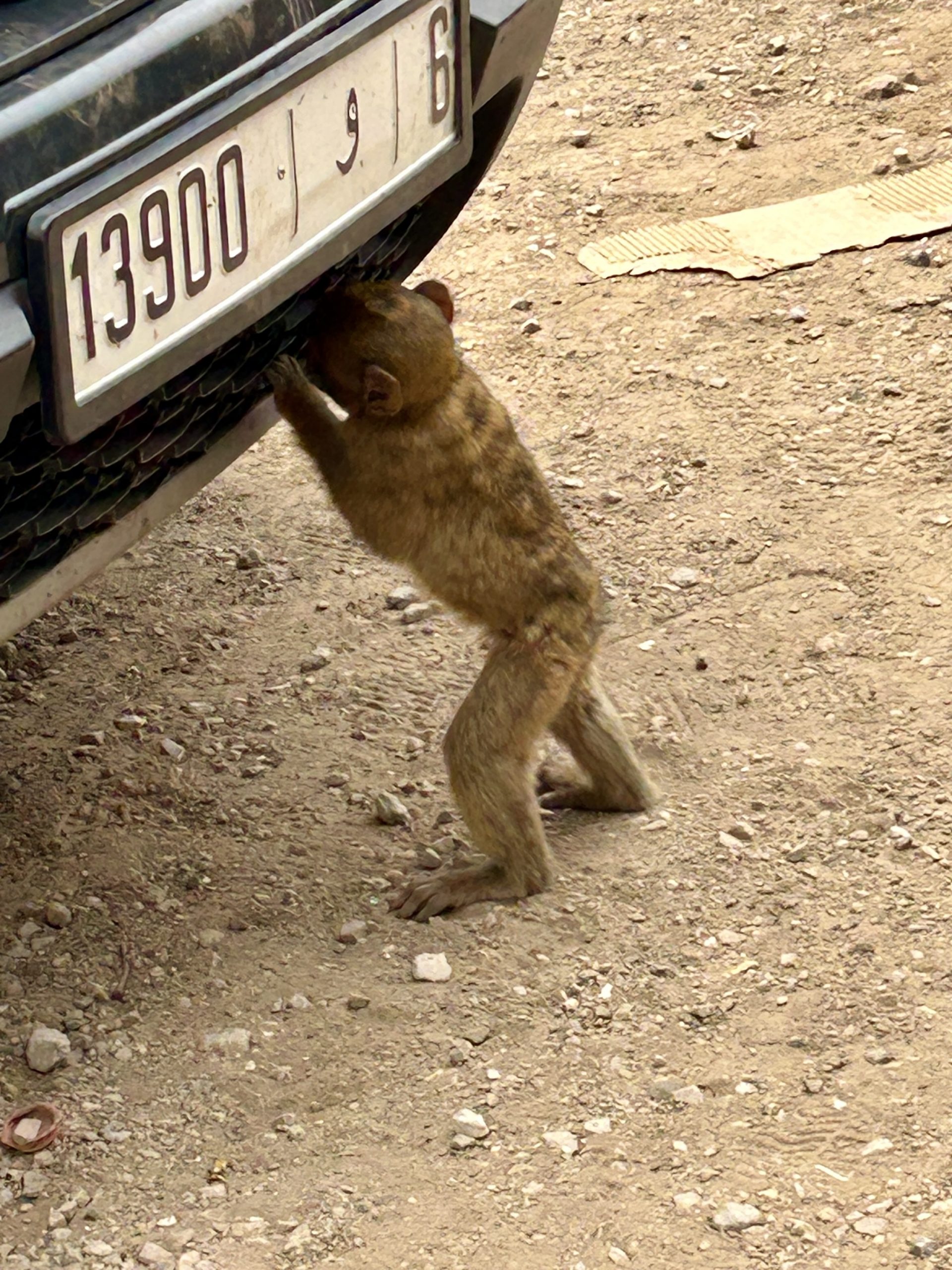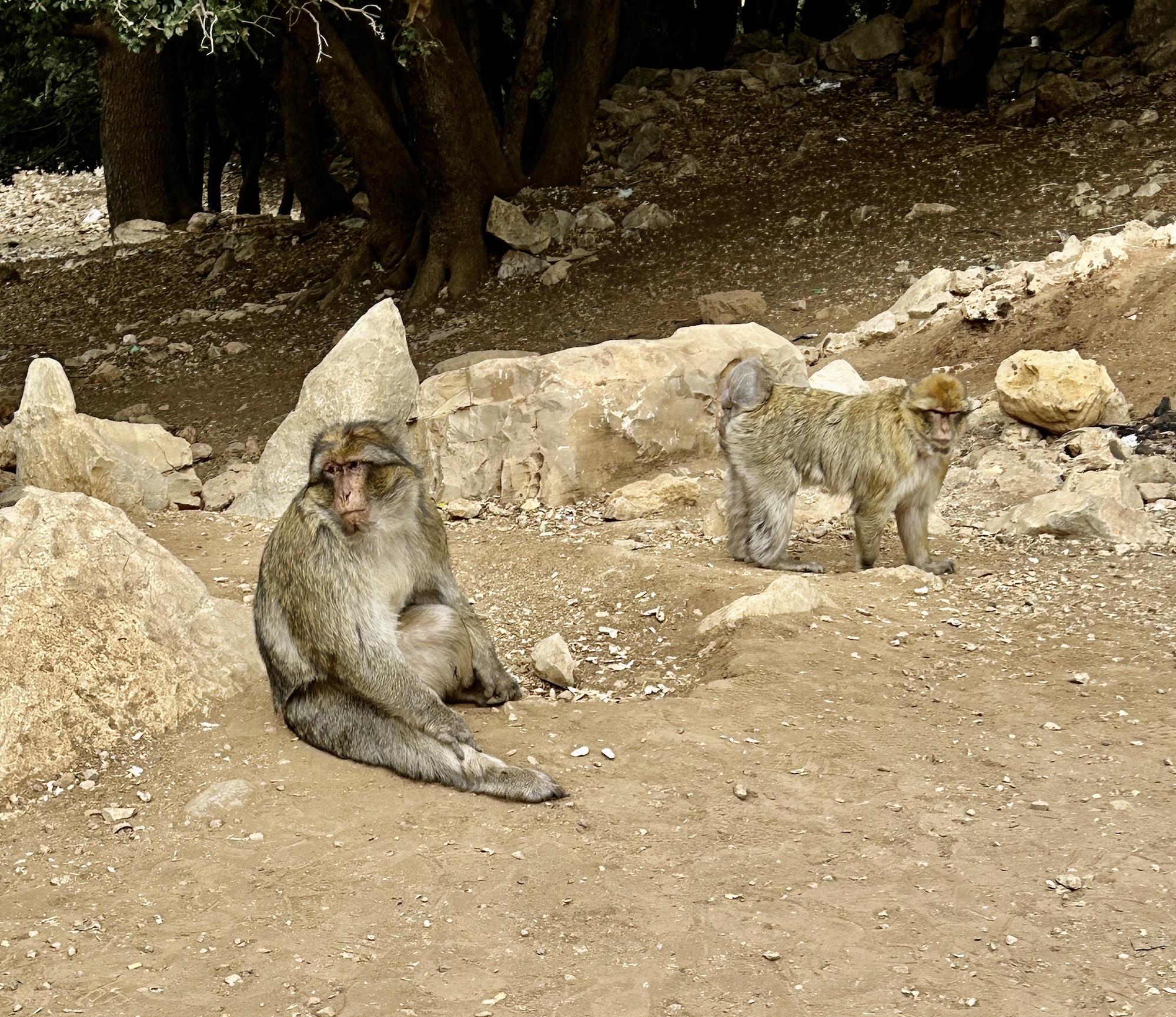 Continuing on our way to Erfoud we soon enter the Cèdre Gouraud Forest which is home to a small population of Barbary macaques, aka Barbary apes. I first encountered them in Gibraltar years ago, but the Atlas Mountains are their natural home. There are estimated to be less than 9,000 of them left in Morocco with habitat loss and kidnapping of young ones for the pet trade, putting their future at risk. We will see them being used as tourist props later on this trip.