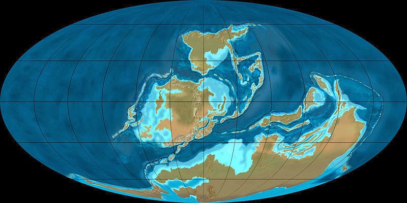 400 million years ago this is what Earth looked like – there were three large continents, Gondwana, Laurussia and Siberia and a few smaller islands. Everything else was one vast ocean. Morocco was then a marine shelf on the northwest corner of Gondwana, which is the large land mass at the bottom of the globe. This created the perfect conditions for the creation of fossils. In what is known as the Devonian Period the shallow seas were teeming with creatures that seem more like they belonged on a Stars Wars set than anything that lived on Earth. And then for reasons still unknown there was a mass extinction that took place over millions of years and completely wiped out the trilobites, a huge family of over 22,000 species that had existed for 270 million years.