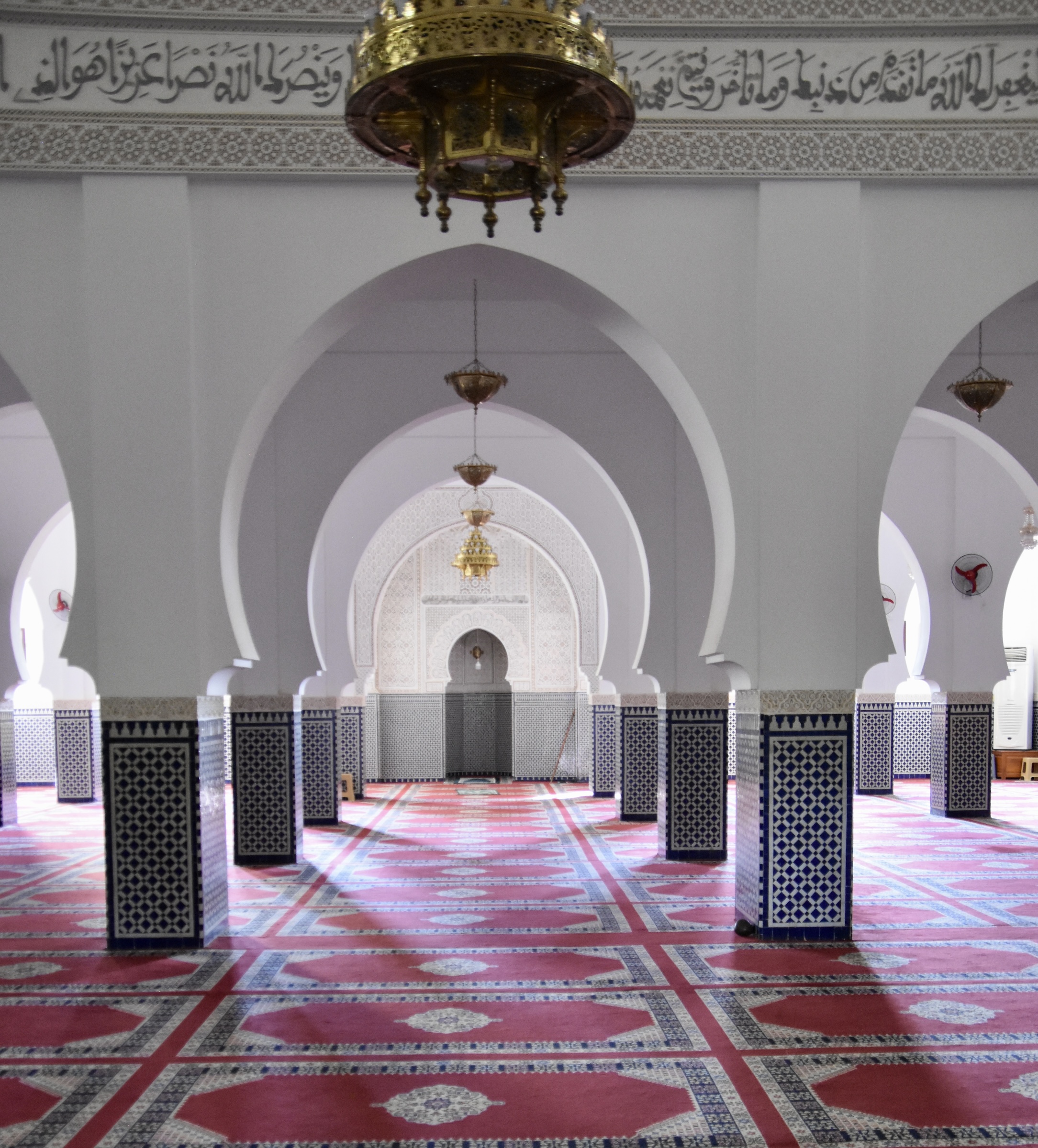 Although non-Muslims are not permitted inside the mausoleum, we are allowed to look inside the mosque, but as in Fes, not go any further. The symmetry is truly amazing.