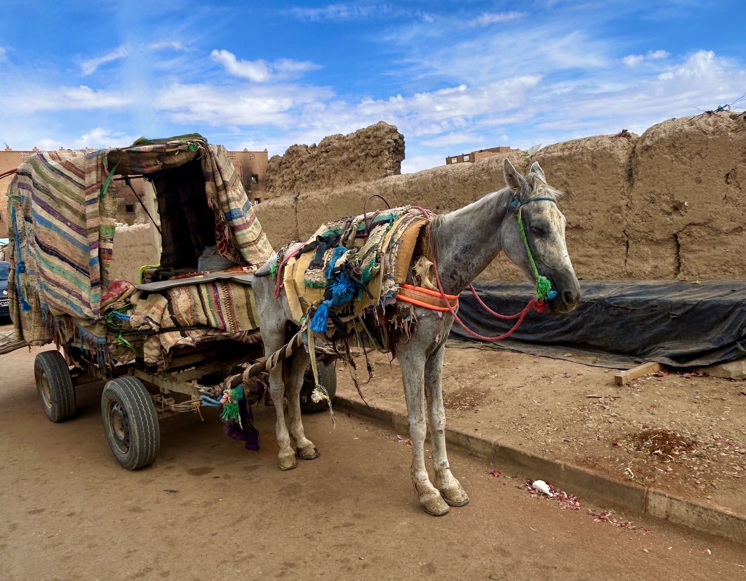 After about an hour we are out of the Tafilet oasis and passing through a landscape that has a different look, but with an austere beauty of its own. There is enough grass to support a few wandering goat herds and the occasional camel, but not much more. The Atlas Mountains are an ever present backdrop and then we come upon what, if I didn’t know better, would think were termite mounds.