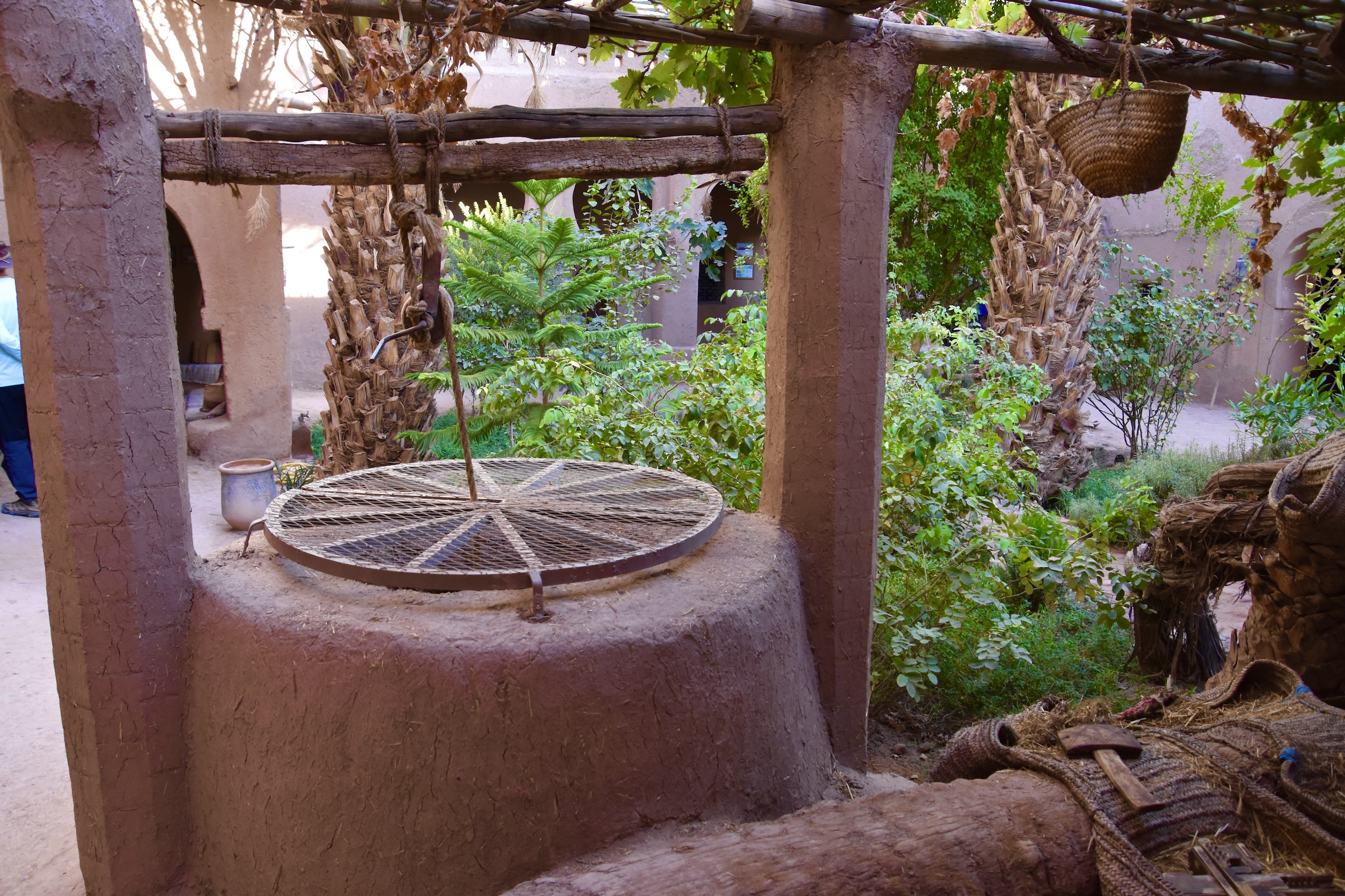 Like the riads we had stayed in, there was a central open courtyard which provided some green relief from the relentlessly tawny walls. This is also where the wells, the lifeblood of the kasbah were found.