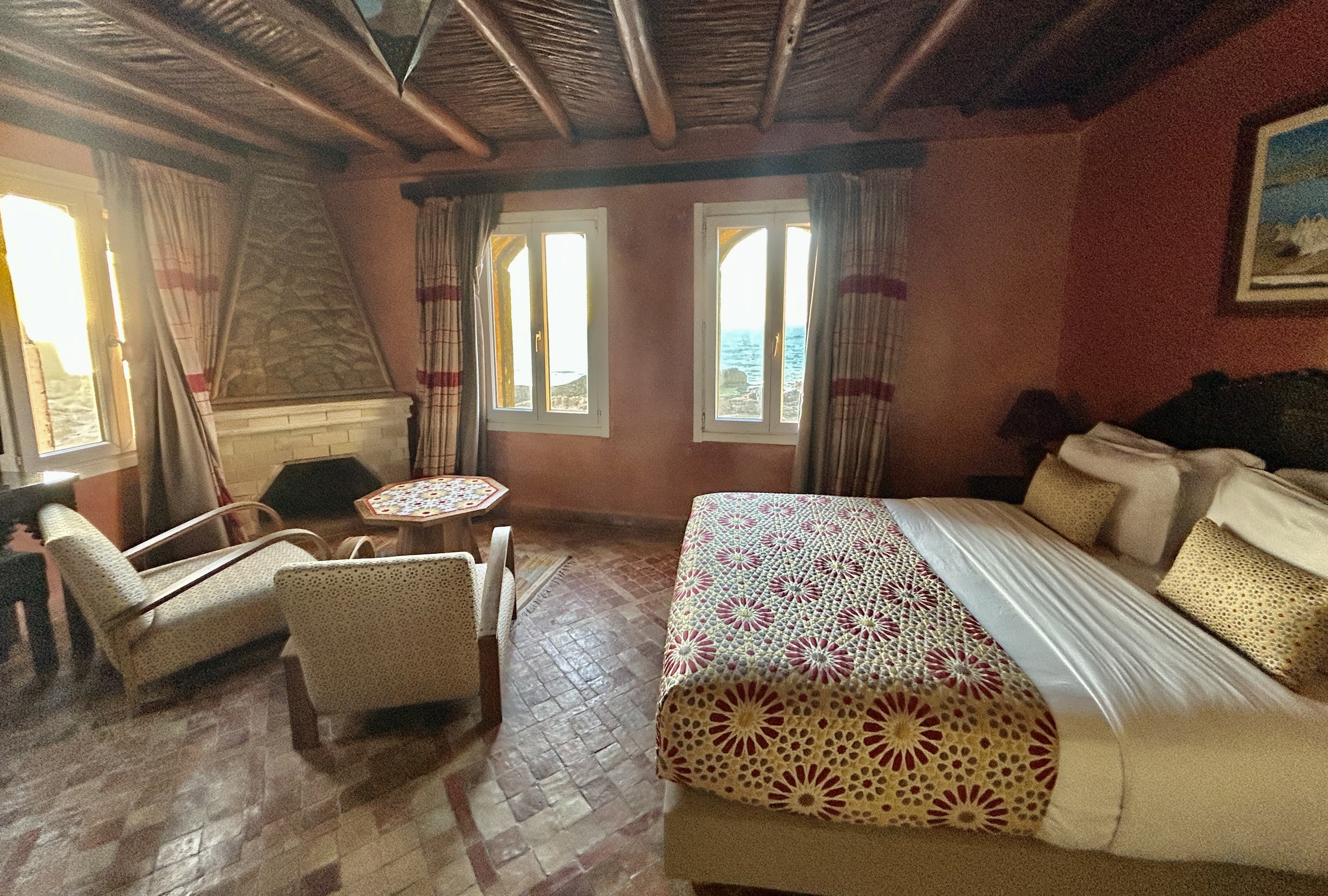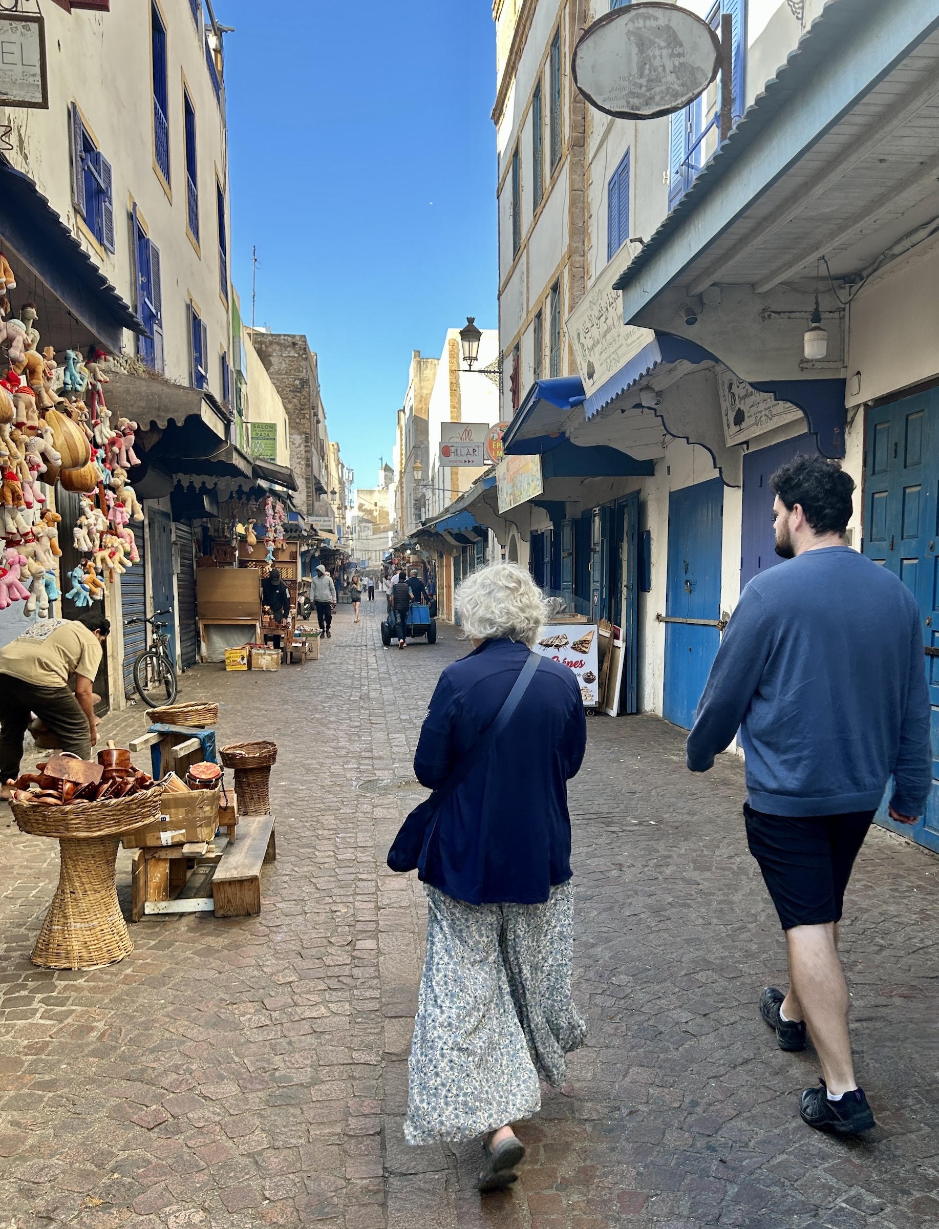 For the duration of the trip we will be staying in riads, rather than the kasbah style hotels of the last five nights. Readers of my post from Fes may recall that riads are former upper class or bourgeois dwellings within the walls of a medina that have been converted into boutique hotels. As noted in that post the rooms in these riads vary greatly and some couples luck out and others do not, but I also noted it evens out over the trip. In Essaouira we will be staying at the Riad Mimouna which was a former grand residence built right into the walls of the medina where it overlooks the Atlantic Ocean. Getting there involved leaving the bus outside the medina and following the hotel porters that were waiting for us through a maze of narrow streets. I really wondered if we could ever find our way back out without a guide.