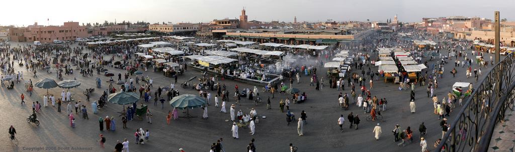 You really cannot get an idea of the scope of this place from a photo like the one above which I took with my iPhone. You need something like this public domain photo to get a better idea of the immensity of the Jemaa el-Fnaa.