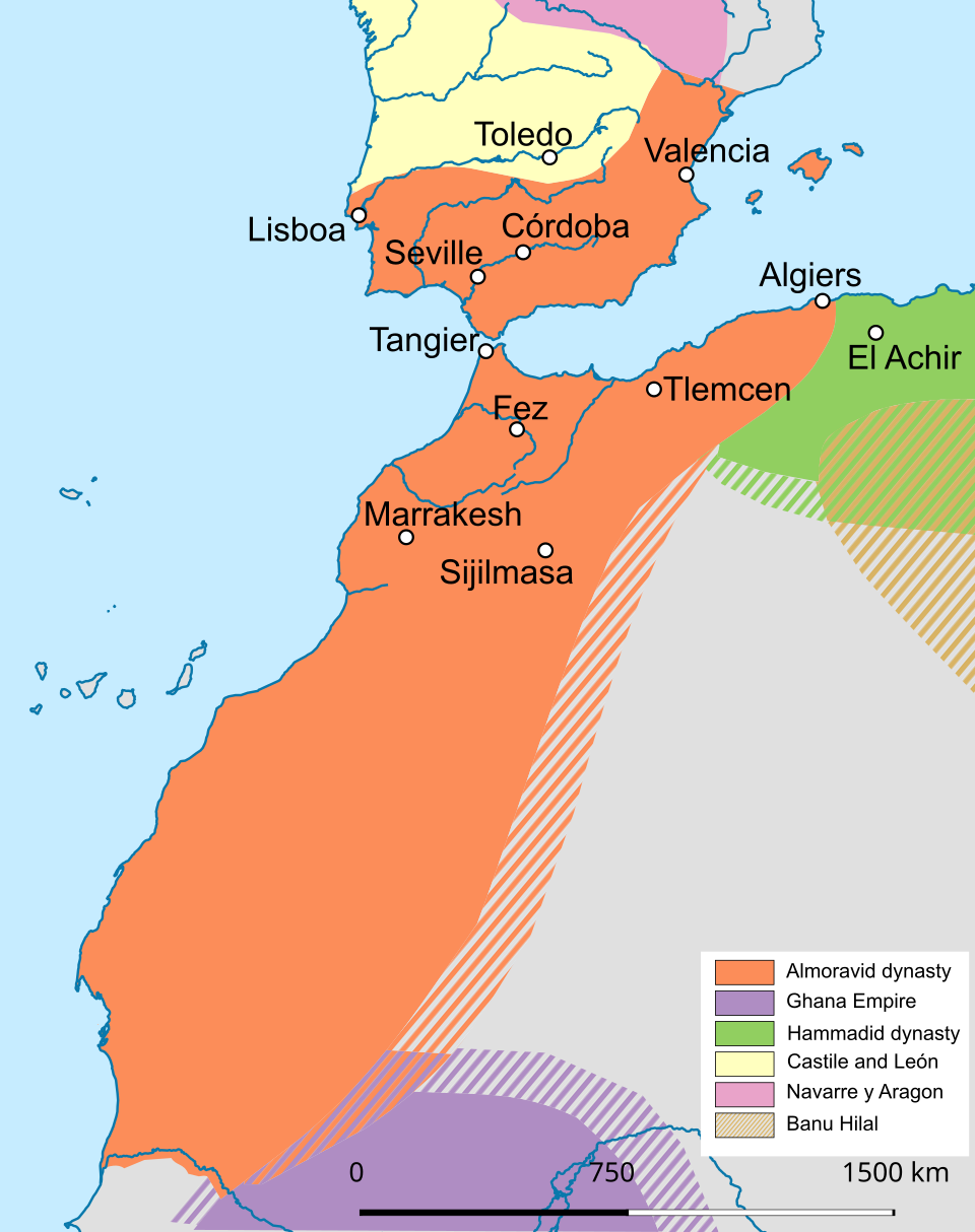 Founded in 1070–72 by the Almoravids, Marrakesh remained a political, economic and cultural centre for a long period. Its influence was felt throughout the western Muslim world, from North Africa to Andalusia. It has several impressive monuments dating from that period: the Koutoubiya Mosque, the Kasbah, the battlements, monumental doors, gardens, etc. Later architectural jewels include the Bandiâ Palace, the Ben Youssef Madrasa, the Saadian Tombs, several great residences and Place Jamaâ El Fna, a veritable open-air theatre.