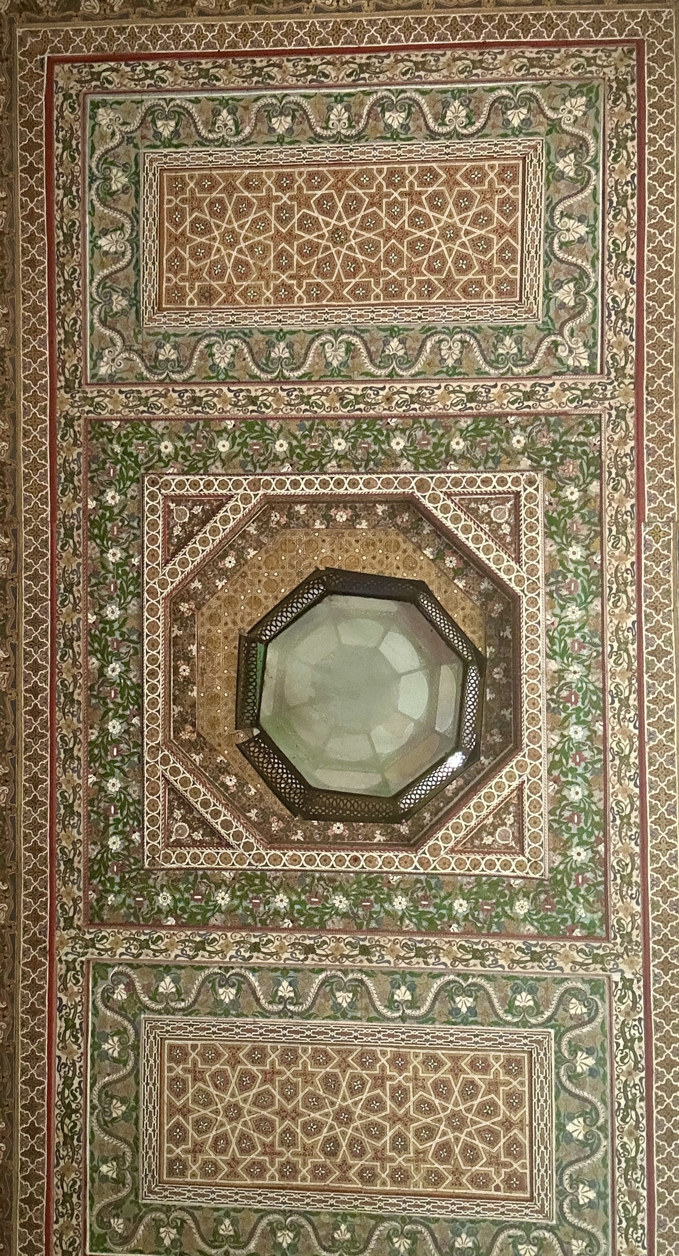 Our tour also included a visit to the Bahia Palace which was built in the late 19th century by the Grand Vizier of Marrakech and later became the headquarters of the French Resident General. The name means ‘brilliance’ and I’m sure it is, but it was so crowded that about the only things I could appreciate were the ceilings, which were brilliant.