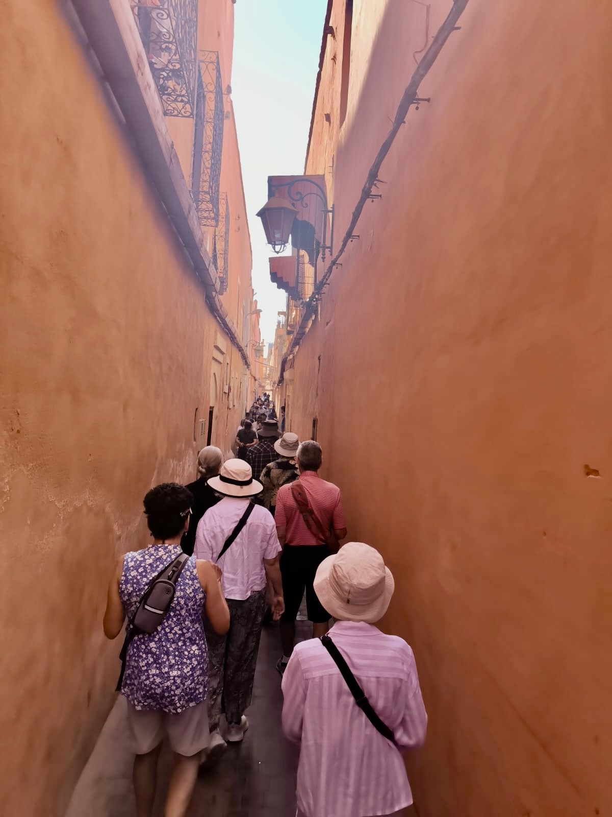 This is our group in one of the narrow lanes of the Marrakech medina. Now imagine some guy roaring up behind you expecting to get by. Worse, you had to prepare to jump out of the way at every corner because you never knew who would be coming around it in complete disregard of who might be on the other side. Honestly, I felt safer crossing the streets of Hanoi and Saigon with there seemingly millions of motorbikes than inside the Marrakech medina.