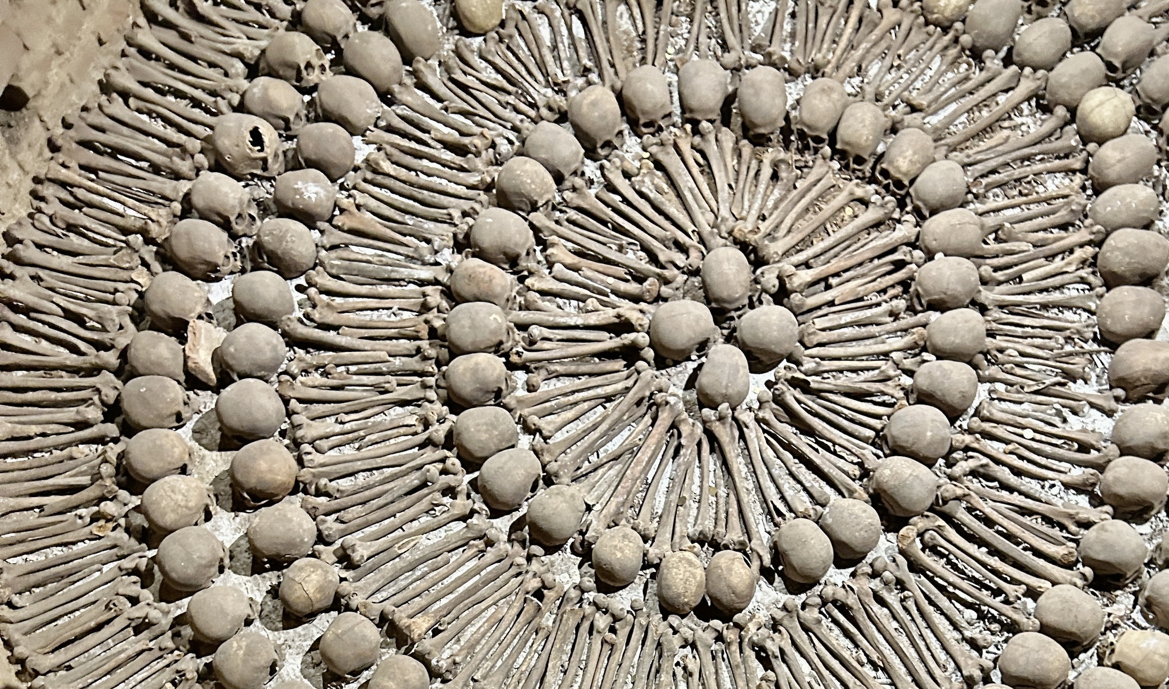 The Franciscans apparently liked to do some artwork with the bones of their deceased frères as evidenced by this display.